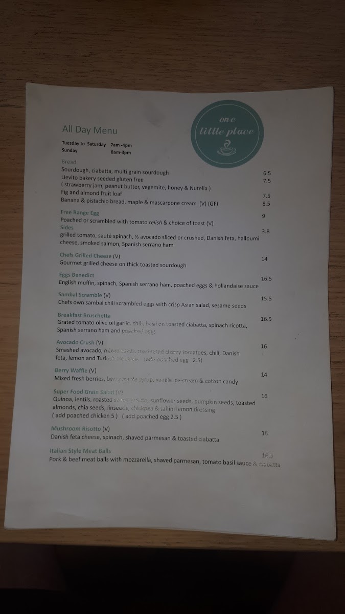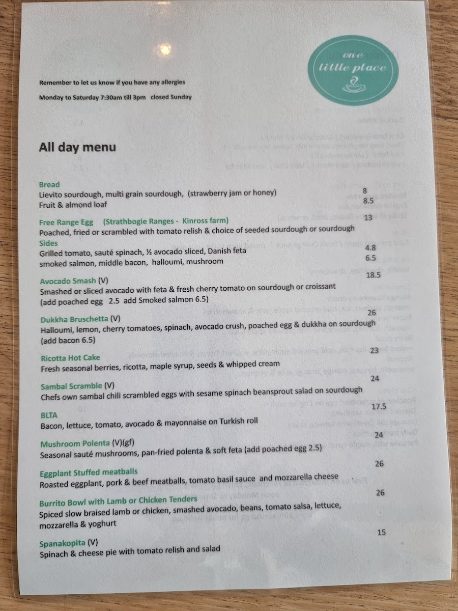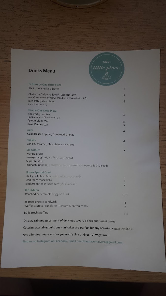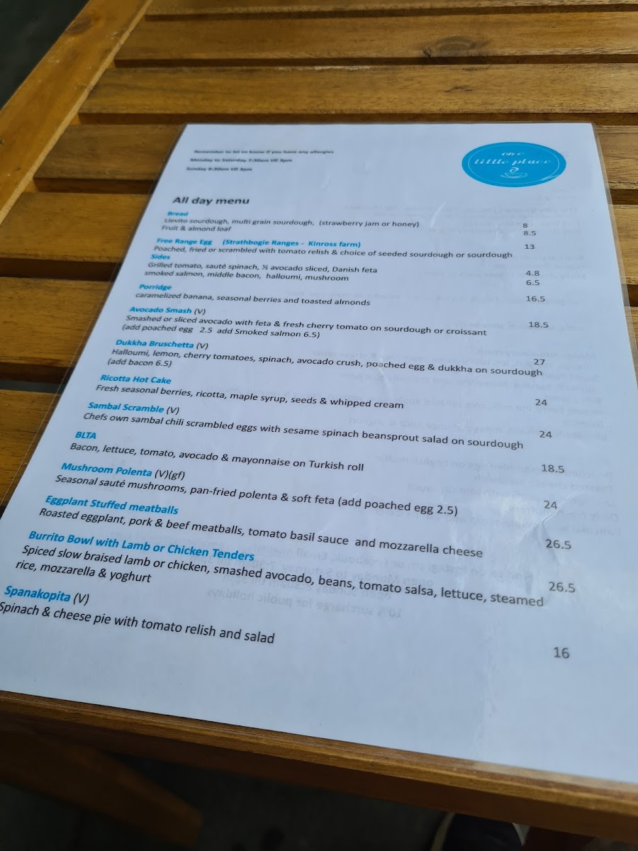 One Little Place Menu